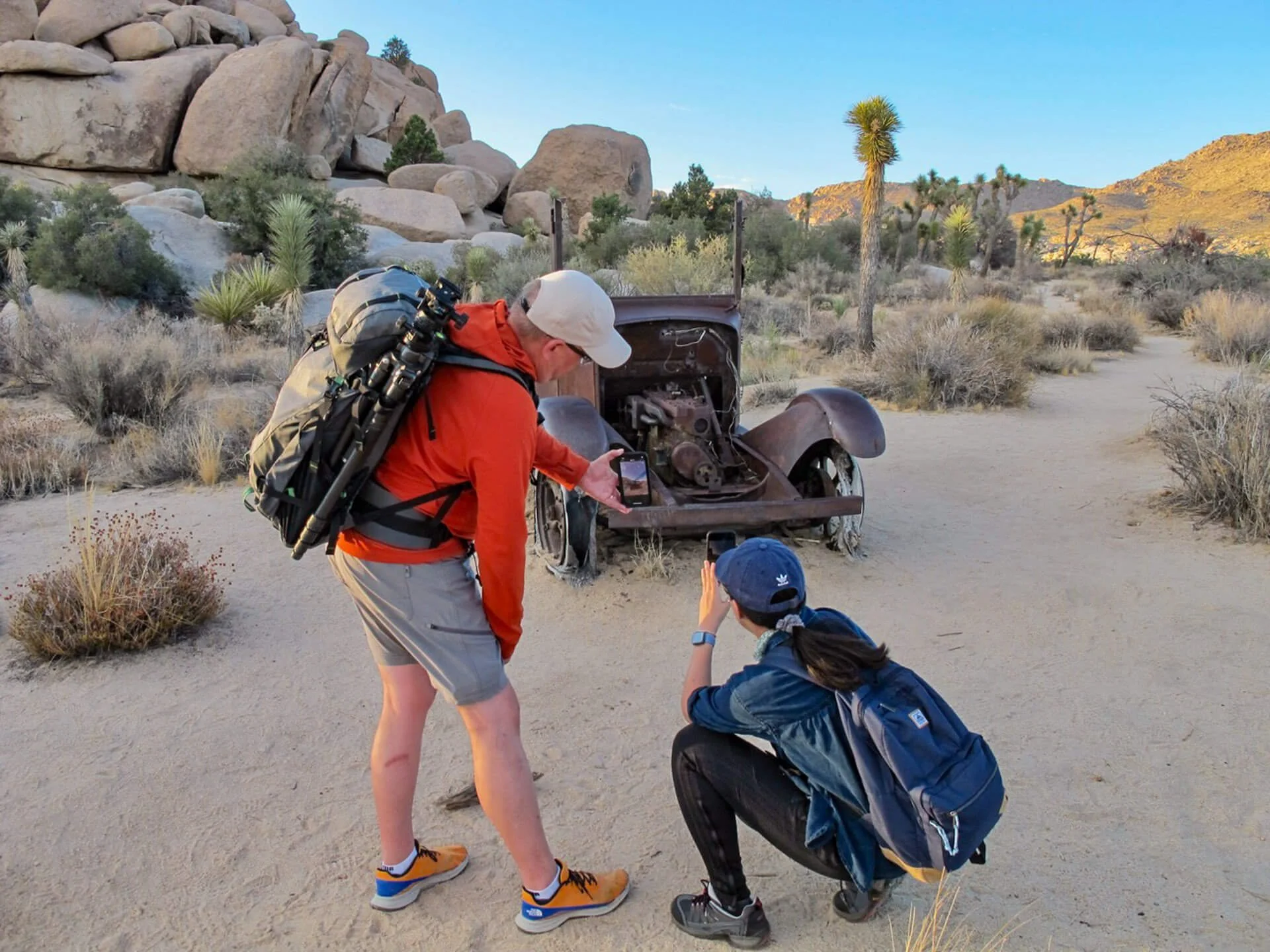 Showing Kay how to use PhotoPills Night AR view to determine where star trails will appear behind this 1929 Lincoln later that night | © 2023 Stephanie Norris