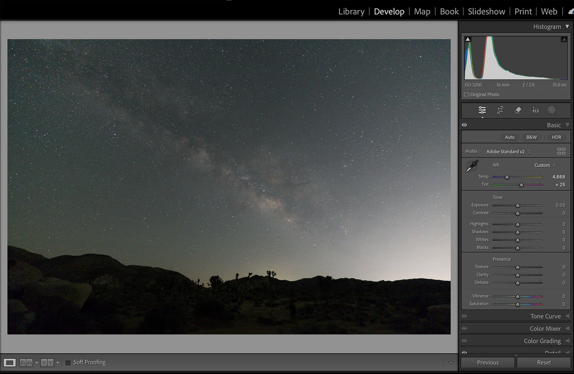 One of my Dark Sky workshop attendees and newsletter subscribers requested this post, and I'm happy to oblige (thanks for the request, Dean). Here’s the workflow I use to edit my Milky Way images.