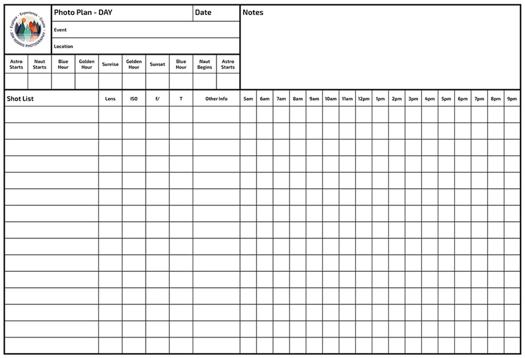 My daytime photo planning sheet (which you can download using the link in the text below) | © 2025 Jon Norris