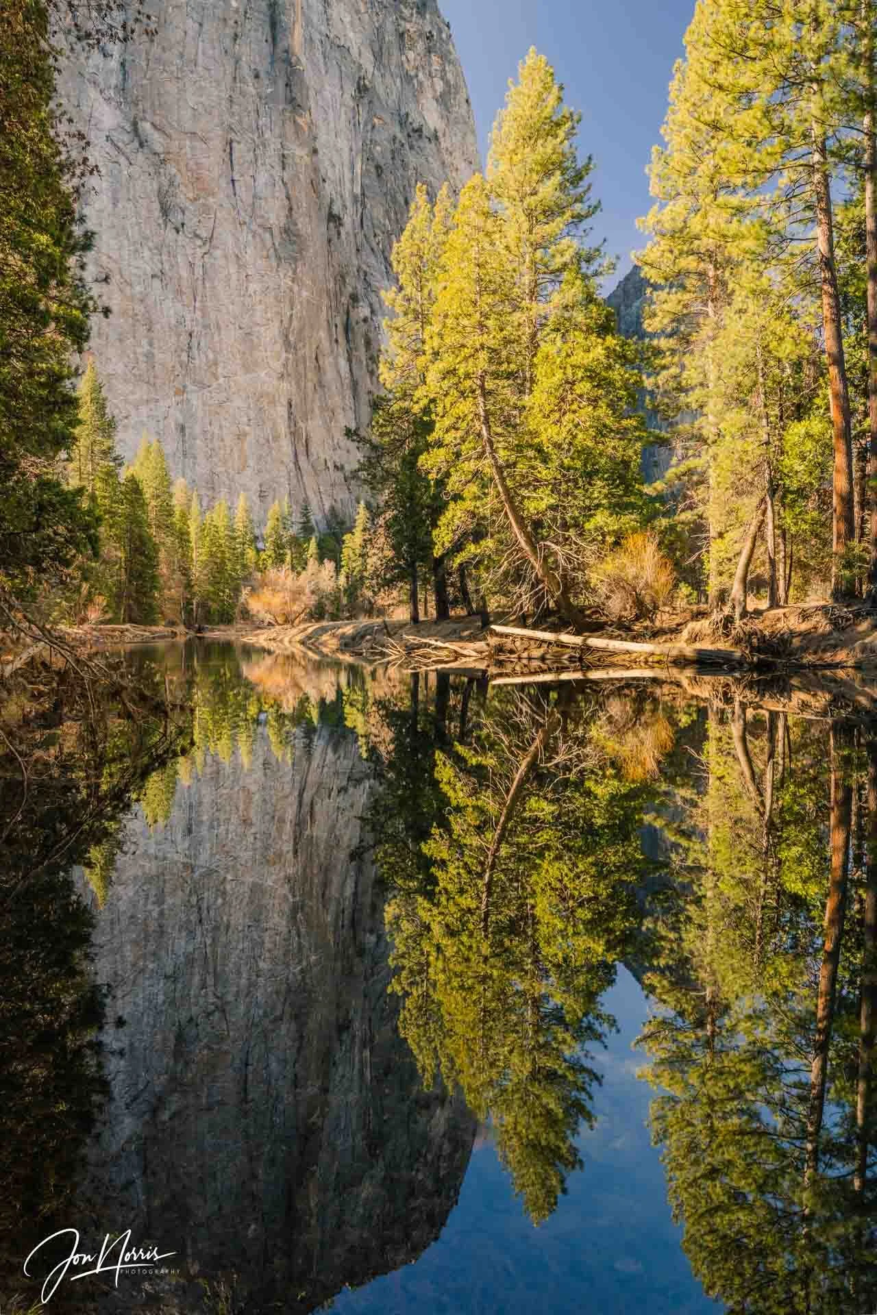 The Merced River provided almost perfect mirror-like reflections of Cathedral Rocks and the majestic red fir trees lining the river banks in the early morning light.